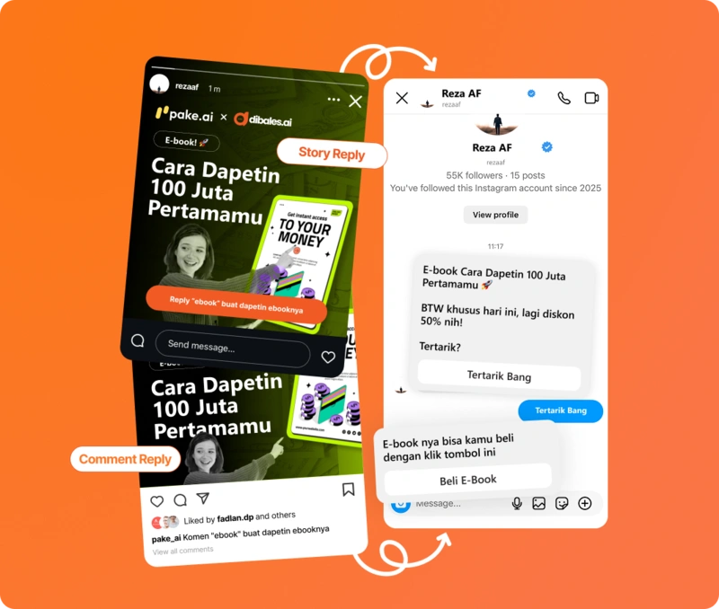 Otomatisasi balasan komentar, story, dan DM hingga follow up — semua dalam satu platform.